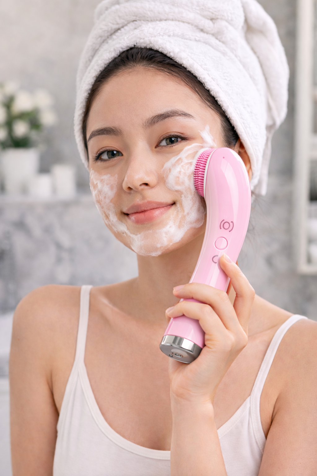 FaceCleanPro™ offers a gentle way to cleanse the skin using soft silicone bristles and controlled vibration. When used with your cleanser, it helps support effective daily facial care without irritation.